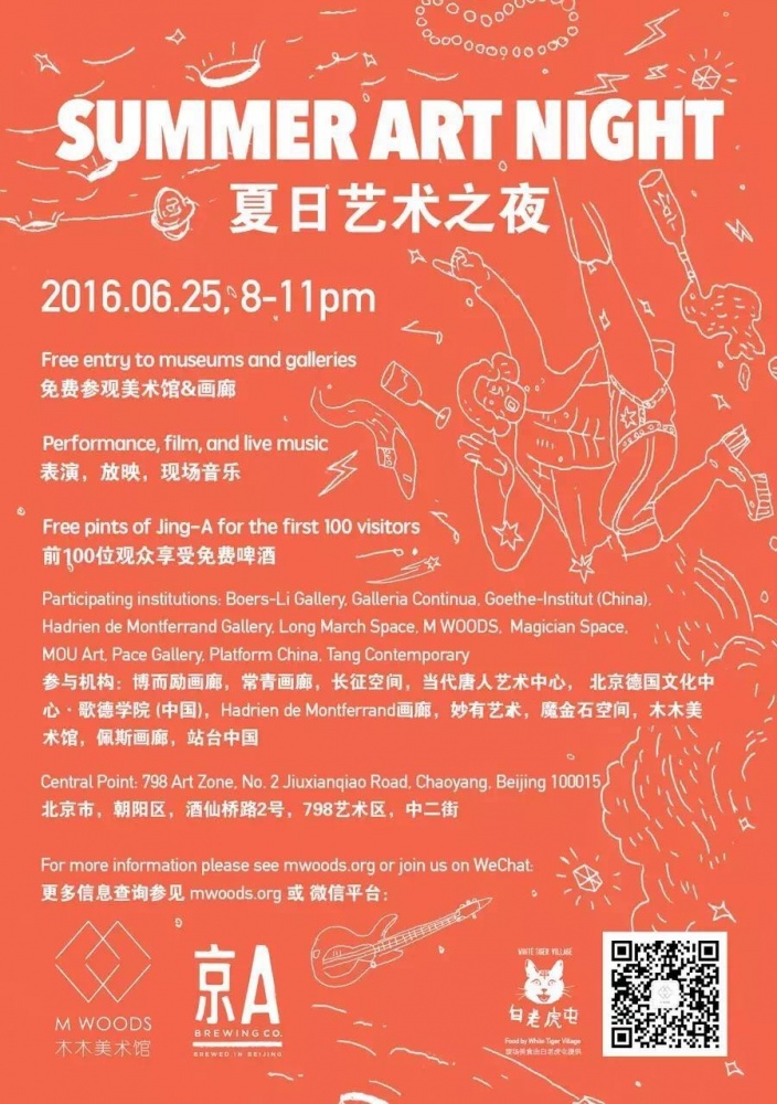 博而励画廊很高兴地宣布将于2016年6月25日(星期六)联合木木美术馆举办“夏日艺术之夜”。我们将与798艺术区内的其他画廊与机构,于当晚8至11点开放展览空间,以供艺术爱好者参观。