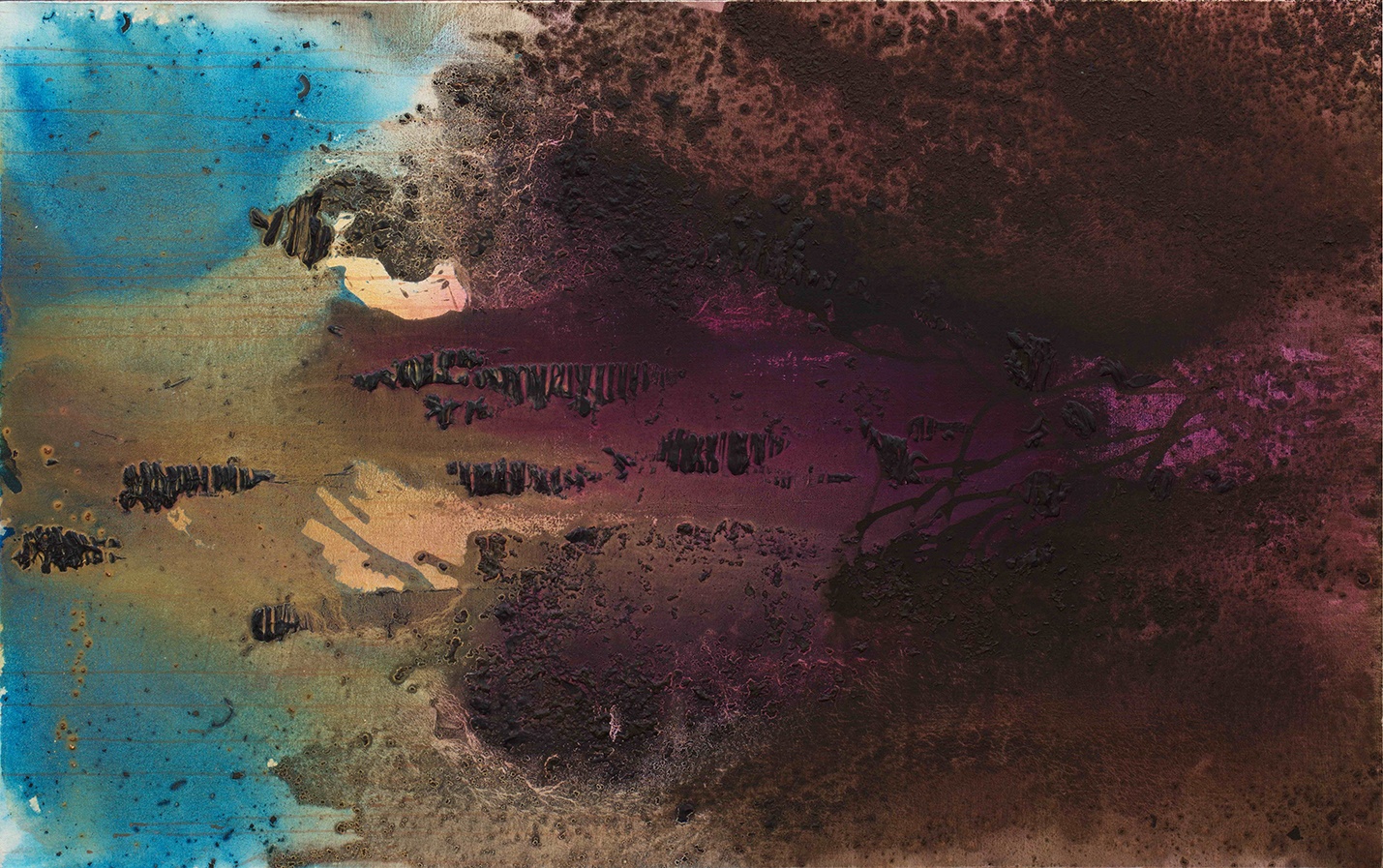 我的所谓“抽象”是源于去掉了主体形象的背景,所以是有空间的,其主体就是空间,是空间关系的变化;空间的产生,是通过材料的溶解、流动和凝聚,通过错觉;没有预设,随其自然,只作最终的判断;以前所未见为标准,尊重画面的引领和启发;把自我融化在无我之中。