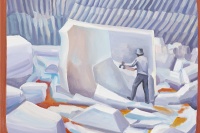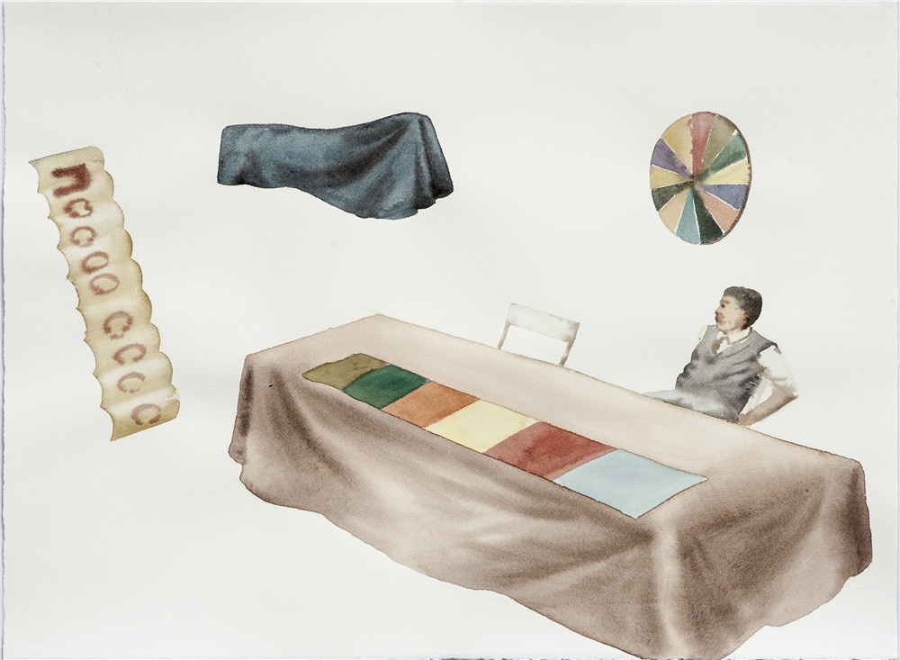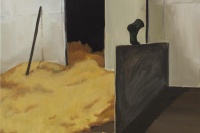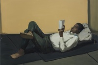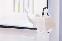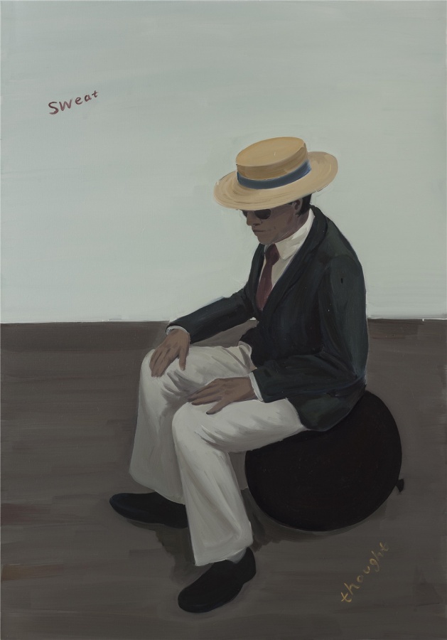 如果说创作和阅读是一种人和小说之间的感知传递;那么,翟倞的绘画就是对这一传递过程的视觉再现,属于对传递过程的二次传递,或者说,是关于“再现”的再现。他让绘画作品的观众随着视觉体验进入到文学作者的角色当中,并从旁观的角度,对创作的主观过程产生想象和反思。而翟倞在此过程中以哲学内涵的表现方式为脉络进行的绘画探索,也呈现出逐层递进的深入面貌。文字的创作究竟是怎样的状态?如何将一个不断扩散的,打乱了时空顺序的世界以文字的逻辑建立起来?而画家对此过程可以有多深的共鸣?视觉的画面将如何重现一个正在建构当中的,逻辑和文字的世界?并且——就像翟倞在一幅画里所暗示的——让人感受到其中的“甜蜜”?他的作品就为我们展开了这幅关于灵感和想象力的画卷。