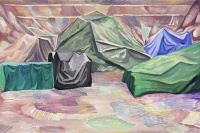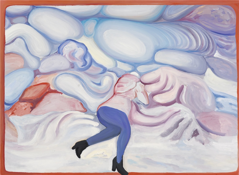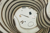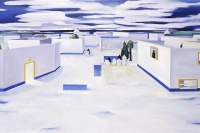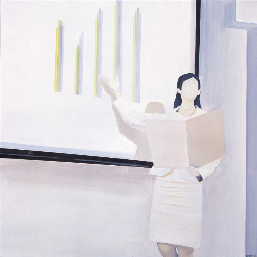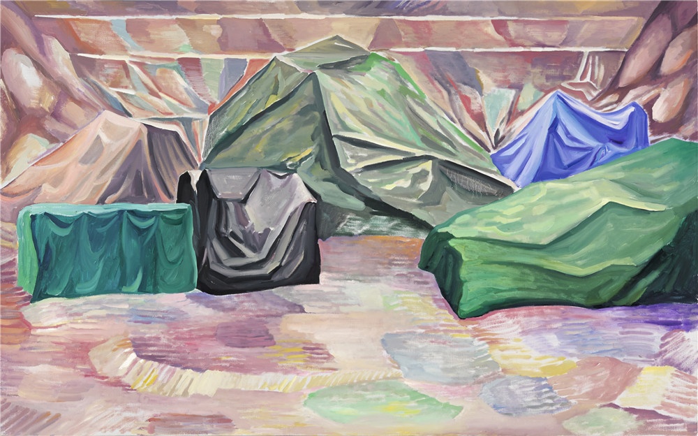 在这样的观感中,作品中的叙事往往是模糊的,这是很多当代绘画的共性。在强调观念性的绘画出现以来,对叙事的破坏成为了制造观念性的重要手段。但是,正如我们所看到的,对观念性的强调往往伴随着贫弱的绘画能力和粗糙的视觉结构,而那些勉强呈现的观念几乎成为了绘画唯一的救命稻草。但余果的绘画以沉默而带有反讽的姿态对这种潮流作出了回应。他虽然破坏了叙事结构,却并没有在画面里暗示任何观念的线索或者明确的态度,而是以冰冷的方式,单纯地创造了一些带有观念元素的画面,却又和观念的表达保持着明确的,带着嘲讽的界限。更重要的是,他对观念性的这种接近冷幽默的态度,是基于他对清晰的视觉结构的梳理,并将观者从对观念的猜测推回到对视觉结构的发现。于是,在看似沉默的态度中,是他对绘画的魅力和视觉的复杂性本身的重新强调。