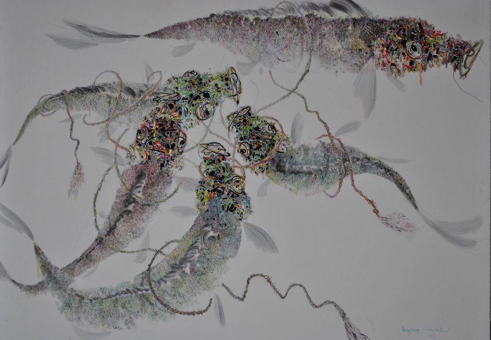 动物。源。源,水流出发的地方。事物的由来。事物发生的本源。根源…艺术家为我们搭了一座桥,这座桥源自那里,源向何处,或许在这个日益嚣闹不宁的社会,我们应该静下心来思考。