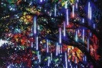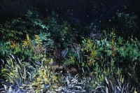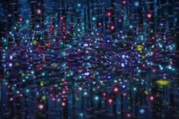 赵博的画记录着他对于人生与社会的认知,之前的他为观众制造了一个梦幻唯美的超现实梦境,现在的他打破这个他创造的梦境图式,创造另外一种真实状态下的虚幻意识形态图景,带观者进入更深的思考状态。他依然是把一种人们看不到的意识形态用视觉的形式加以表达,这种意识形态随着艺术家本人对于社会或是人生理性认知的深入与成长而随之改变状态,但每时每刻每个阶段是其意识形态最真实状况的反映,他用自己的画笔纪录下来,展现给观众,并希望观众可以对于自身的意识状态进行新的审视与认知。画面中的节奏与旋律最后达成整体的和谐,画面中的每一个点,线,面或者不同色块最后形成的整体画面最终都表现着艺术家本人对于生命状态下产生的意识形态所赋予的含义。赵博将自己的意识形态视觉化,最终构造出一个不断成长的赵博解读背景下的“意识图景”,他没有当下艺术世界的浮躁感,保持着一颗难得的宁静之心,用自己的方式,诚实地记录着自己对于这个世界的认知。他不停止的思考,他对待生活的诚实,最终没有使他陷入概念化的程式之中,并为自己的艺术创作找到一个发人深省的“美丽新世界”。