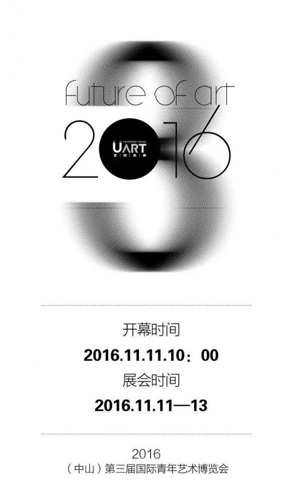 艺术未来?2016(中山)第三届国际青年艺术博览会(以下简称艺博会)开幕式将于11月10日17时在广州中山博览中心启幕。本届艺博会由国内著名批评家、策展人吴鸿担纲总策划,艺博会由主题展、专题展、特别展、文化活动四个内容板块构成,相对应的设立主题展区、艺术家专题个展区、特别项目展区(画廊、艺术城市馆群)等区域。展览时间为11月11日至13日,VIP专场时间为11月10日 18时至22时。