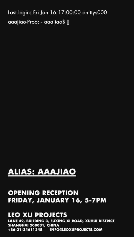 LEO XU PROJECTS很荣幸地展出《代号:aaajiao》。本次展览是活跃于国际的中国年轻新媒体艺术家aaajiao在2015年的首次画廊个展。展览将集中呈现以aaajiao作为其网络别名和创作艺名的上海艺术家徐文恺新作以及为展览委约创作的项目。这批作品丈量了以新科技、新媒体为依托的艺术创作的新维度和方向,并探索了以互联网和数码技术为主导当代生活中急迫的议题。展览将从2015年1月16日展出至3月8日。展览同期将有一系列在线和线下的活动和展出。艺术家本人亦将会出席开幕酒会,时间:周五,1月16日,晚5至7时。