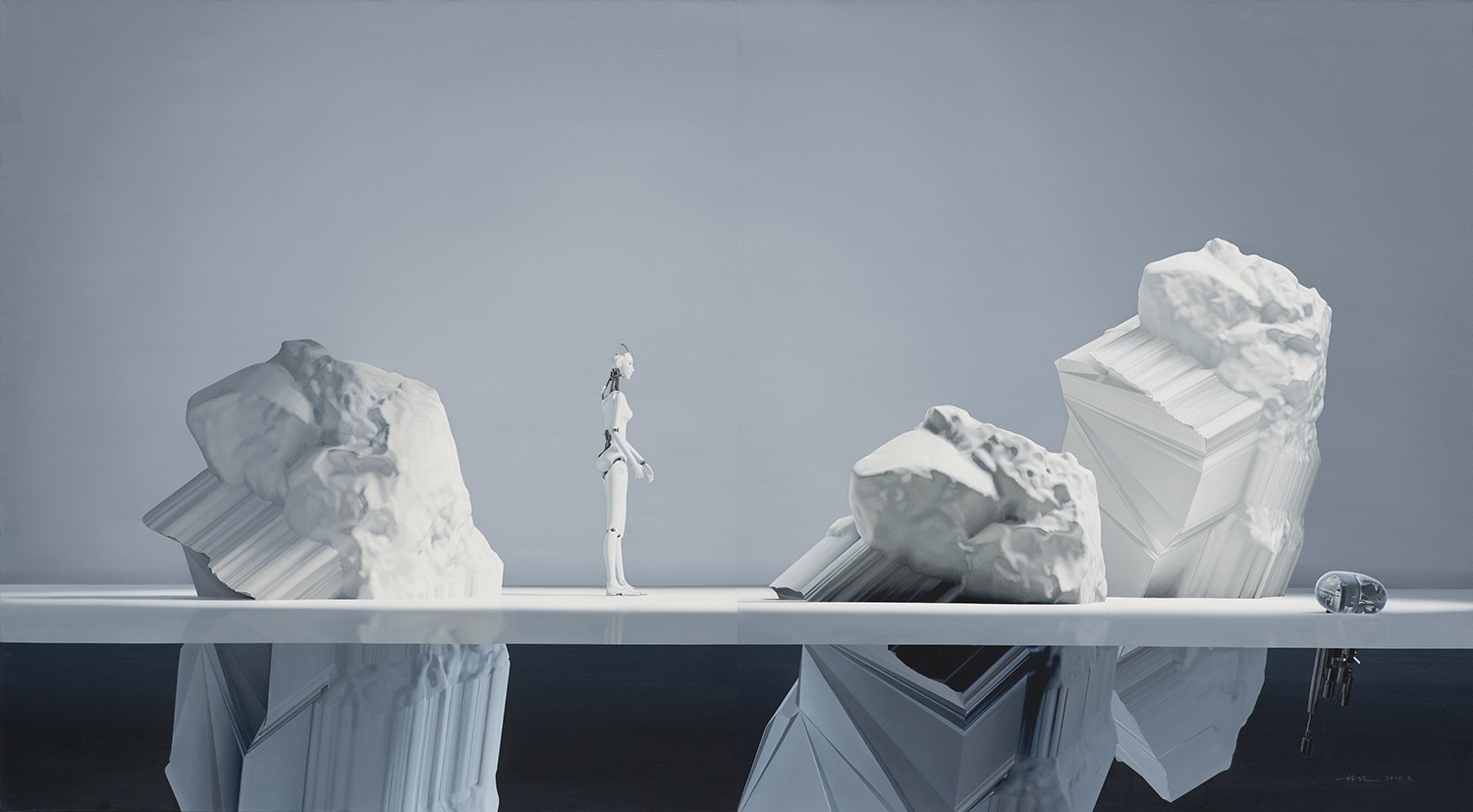 在2006年《金属的假面》系列到之后数年的《宴会》、《卸妆》等作品中,我们可以清楚地看到作者的象征和隐喻企图,生命与非生命的比照与悬置,现代文明对人性的异化和疏离通过虚拟的人物和虚拟的场景明白无疑地表露出来,人类成为了自身所创造出的科学和技术的奴隶,不断被摧毁和变异。而从《我只是以你要的样子出现而已》、《好像悲伤从来不曾有过》、《你会想我的》和《我和你的世界是不同的》等作品开始,虚拟人似乎获得了真正做为人的思考和感知能力,艺术家开始将自身的情感世界投注进虚拟对象中,这一时期的作品被赋予了高度拟人化的特质,做为艺术家的现实的我跟做为被制造出的虚拟形象的我构成了一种镜像关系,一度让我们怀疑究竟谁才是谁的镜子。