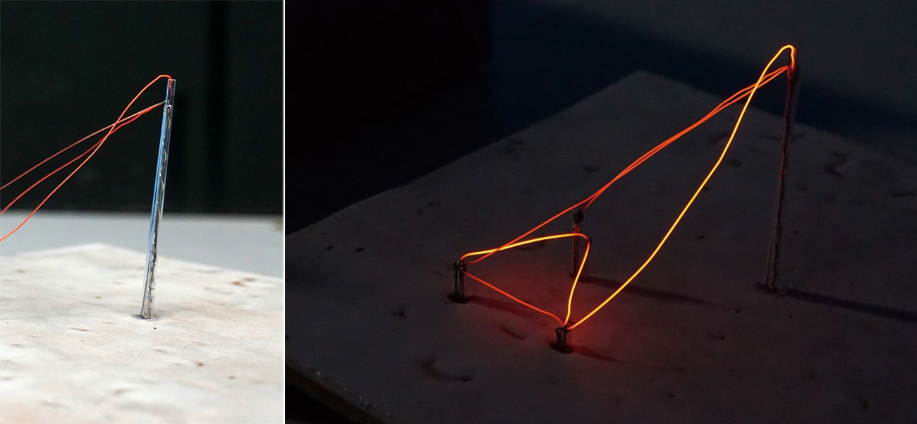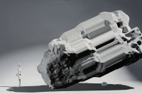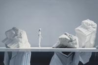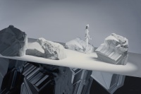 《错误的秩序——废弃》和《时光的额外维度》都是我在创作作品的过程中所留下的操作过程。其中《错误的秩序——废弃》这个装置的数字形象的原型是一颗现实中的矿石,我把矿石的模型数据转换到数字媒介中,再进行随机地破碎和重组,使它以一种错误的电子状态出现,然后重新在现实空间中实现出来。我希望虚拟作品的碎片和痕迹能够延伸到现实中来,物化它们、强调它们,使得它们按照我们所习惯的方式来存在。
