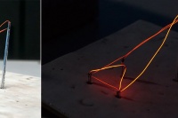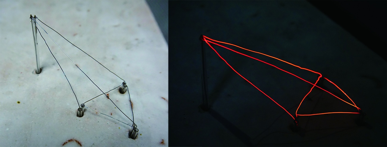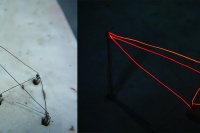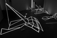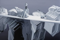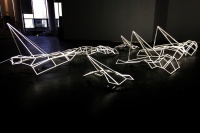 如果世界当真是由非物质化或者弱物质化的弦线所构成的话,那么是不是可以说由艺术家林欣通过三维建模方式在电脑中所构建的那个虚拟空间看上去可能比我们习惯认知了的现实空间更接近于超弦世界的奥义呢?