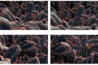 新作品重在探索电子虚拟的一些特质与我们日常所产生的关系,用电子程序的错误(bug)来捕捉它的特质,人和程序互相干预,并把错误的程序视觉化的方式来呈现。将数字虚拟特有的成像方式、视觉特质来和程序进行各种人为的破碎和重组,如此所呈现出来的异样存在,是那么真实、那么常见又那么不正常,如同失真的现实。它呈现出似是而非的风景,似是而非的形态。与常态格格不入,这种特质就像是“超弦”般的存在。