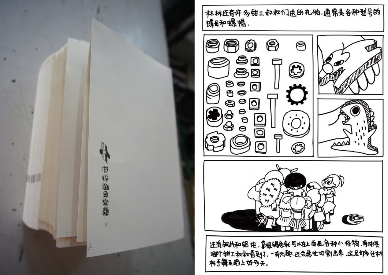 《林林的百宝箱》是林欣的自传体绘本,用漫画的分镜头描述了艺术家的成长小故事,奇幻色彩的经历和小女生天马心空的奇思妙想是一代人的生存体验,也是艺术家和机器之间的秘密。