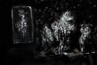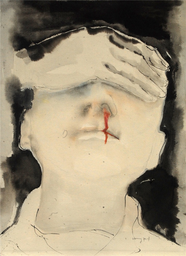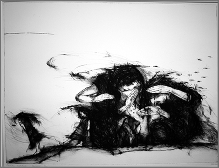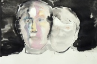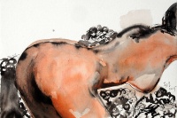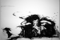 上空间携手爱沙尼亚艺术家瑞蒂•萨克斯和中国艺术家黄志琼,举办“此时的印记”双个展,策展人夏可君先生说: 萨克斯的作品是将自拍照制作成雕版,结合印刷的影像、古典的雕版形式,饰以现代电脑艺术以及数字影像技术,生成为一幅屏幕,通过浓墨来表现自我的某个瞬间时刻,而且是复多的自己,似乎是一幅素描的速写,其实是对个体自我形象的反思,或者是镜像的折射,画面上同时出现三种状态的自我,把自我意识与无意识同时呈现出来,或者是一个大写的自我被一个矮化的自我所反讽,以黑白两色的微妙变化,附着一些幽灵般的形体,建构一个内心的梦幻舞台,艺术家在一个白日梦似的舞台上,与自我进行自由的联想与游戏,以挽留这个即可消逝的现时自我。