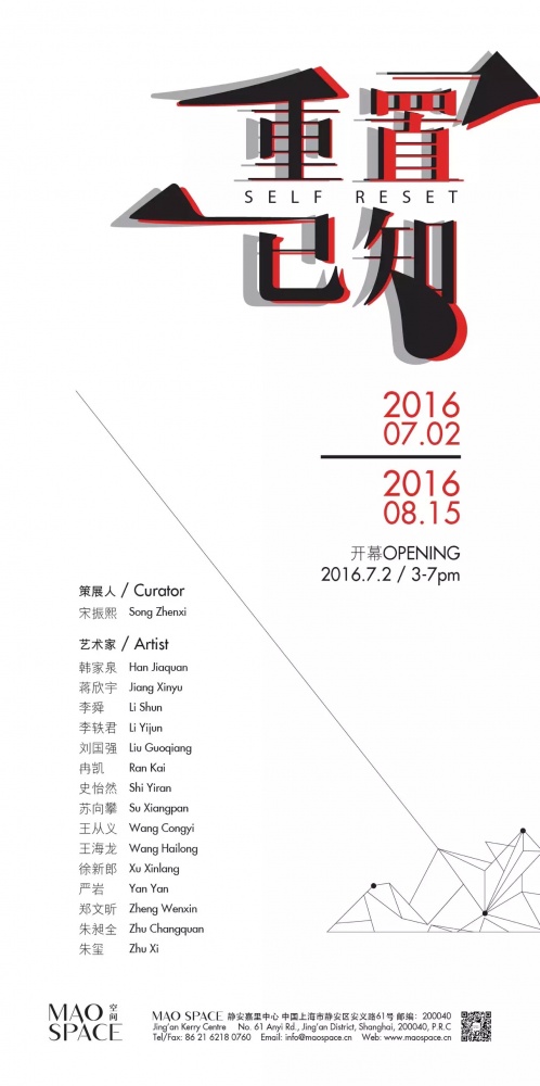 2016年7月2日,Mao Space静安嘉里中心将呈现当代艺术家邀请展“重置已知”,此次展览集合15位艺术家,30余件作品,涵盖绘画、综合艺术、装置、影像、摄影等艺术类型。