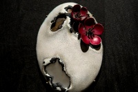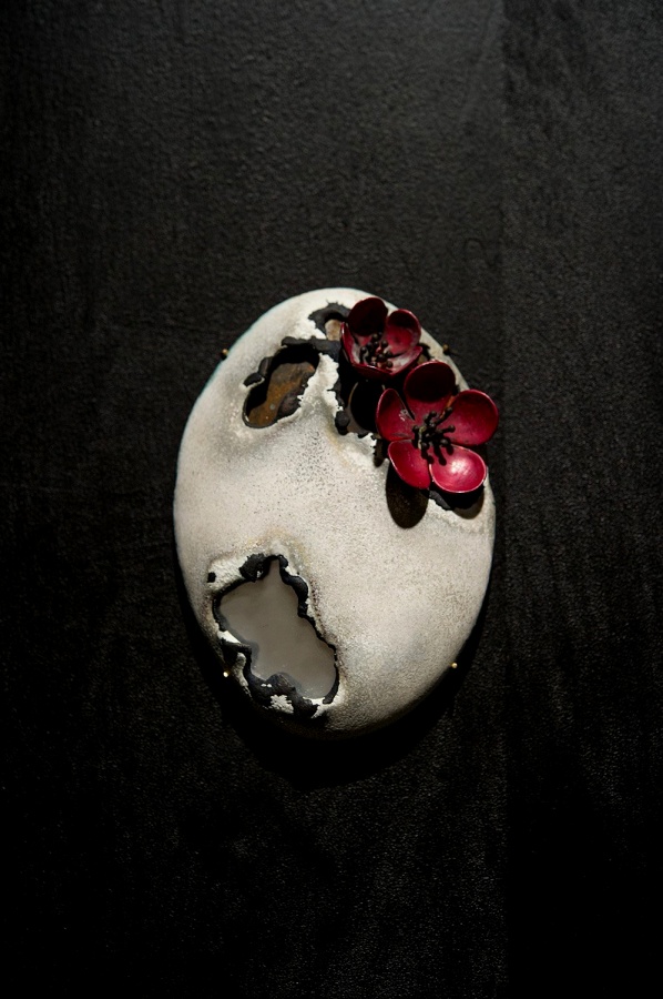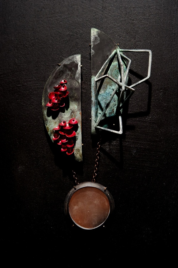 庄昀 生于中国台湾,美国加州艺术院珠宝设计专业学士学位,珠宝设计师,擅长使用金属为媒介去制作艺术表达思想。中国传统文化不仅仅存于大陆本土,在海峡对面的中国台湾,新加坡,香港都保持着源远的流传。她的作品《半神话》以金属工艺的方式讲述她与自己,父母,姐妹,朋友之间的交流。在做给父亲的作品中,健康、安全、道德和责任是她父亲寄予她的准则和期望,这也是所有华人共同分享同一套准则。