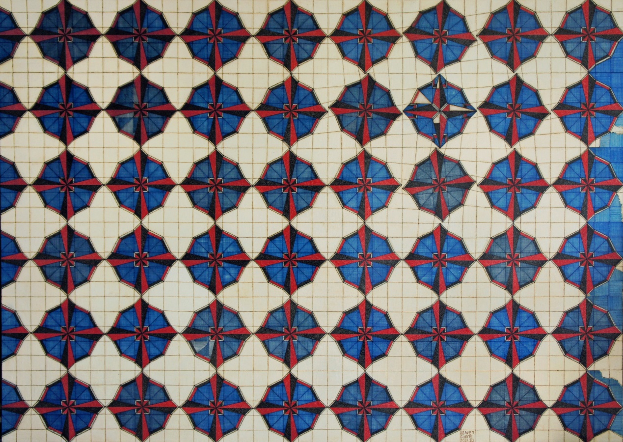 从2011年开始李文光便与纸本和线条结缘。他的工作室位于上海松江的一角。每天他深居简出,以八小时甚至十几小时的密度投入到工作状态中。在创作过程中,他的作品存在很大的“身体性”,而这个“身体性”在内化入作品中却再次退后,呈现出视觉上近乎真实存在的花砖形态。这并非是对环境的再现,而是日常经验在画布上的再发生。这是他独特的创作路径,也可被理解为他的思考线索,与观念无关,甚至有点反观念。他所承载的系统是以城市中的日常经验为土地,让生活经验本身连同身体的行为一起沉淀在了近乎曾经真实存在的画面纹路里。在上海这座城市里,对文化、生活的感知以不同的方式存在。在这座城市里的日常经验,让他为当代艺术在这座城市里存在发现了新的可能性。