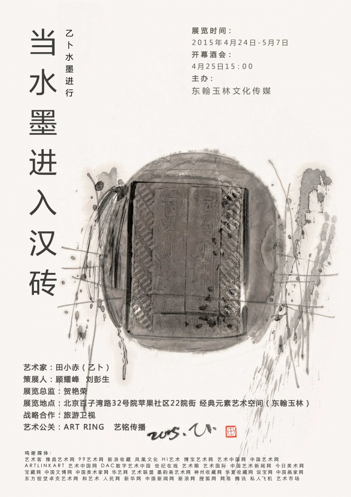 “当水墨进入汉砖”,还是“当水墨浸入汉砖”?用“进入”,还是用“浸入”?在决定这个名字的时候,我和老田有过认真的探讨。在读音上,这两个词一样,在字义上,它们也接近。但不同在于:浸入,是缓慢的、侵润的、时间漫长的;而相比之下的“进入”一词,要显得直接、有力。最后我们决定选用“进入”。