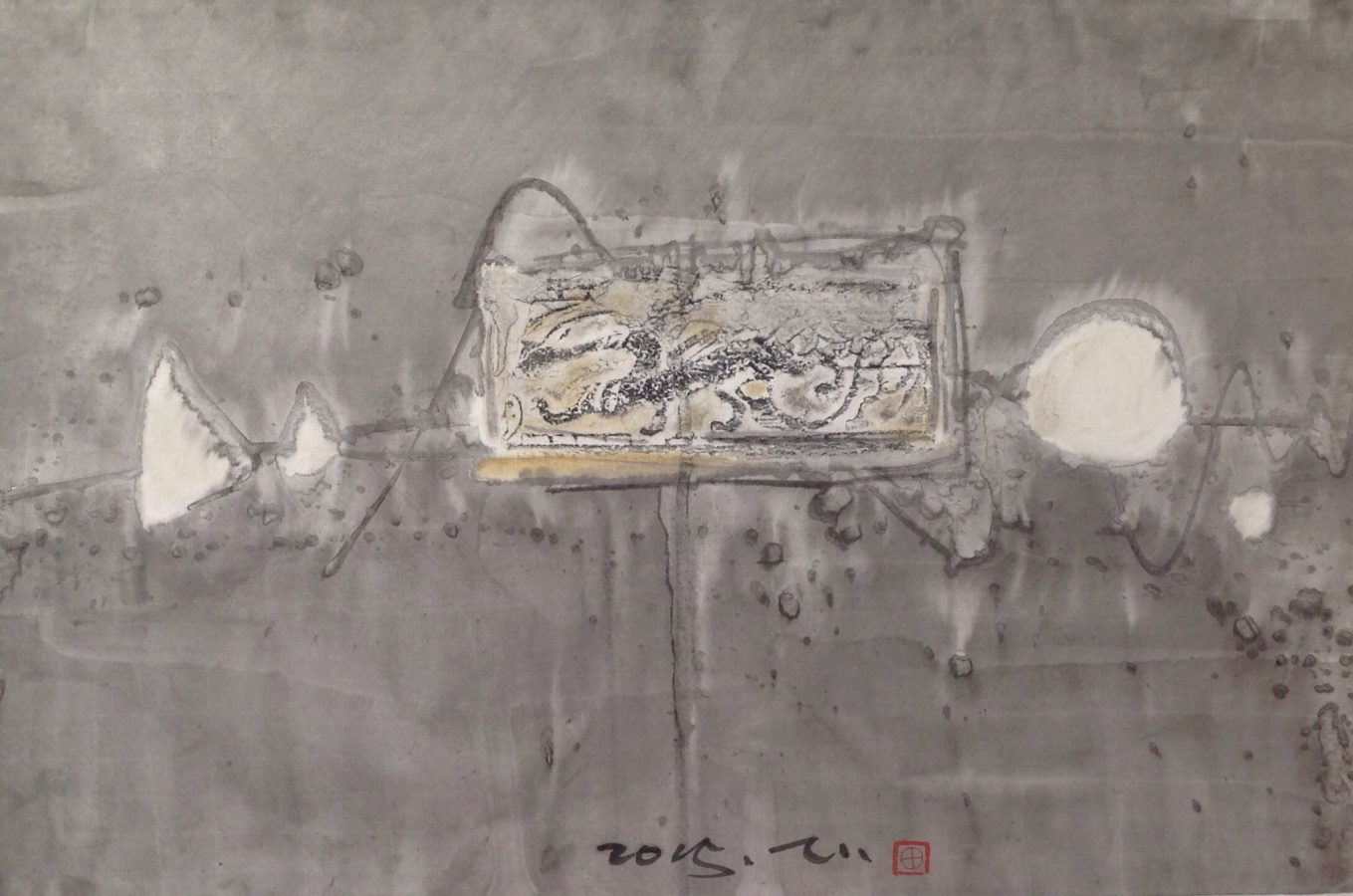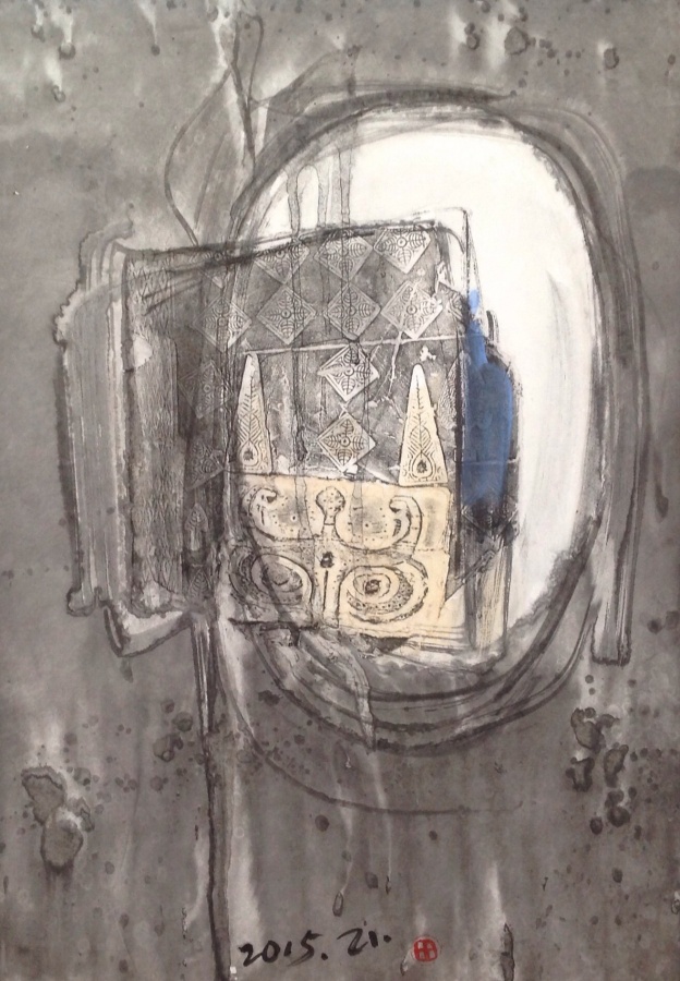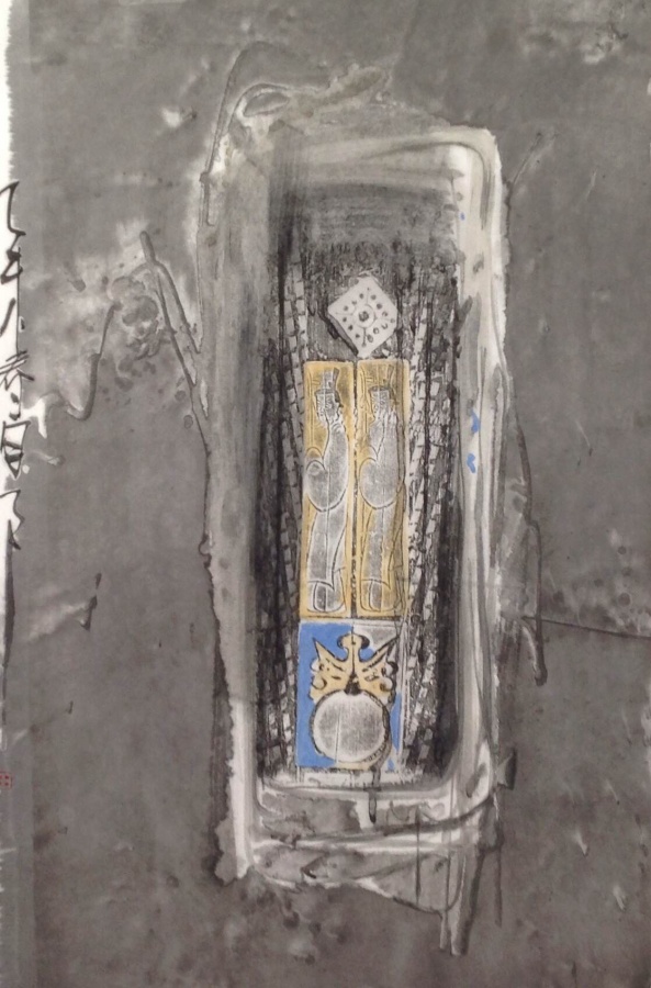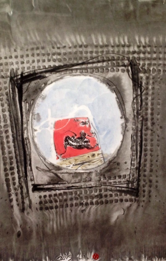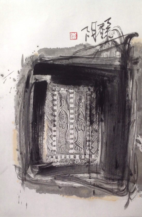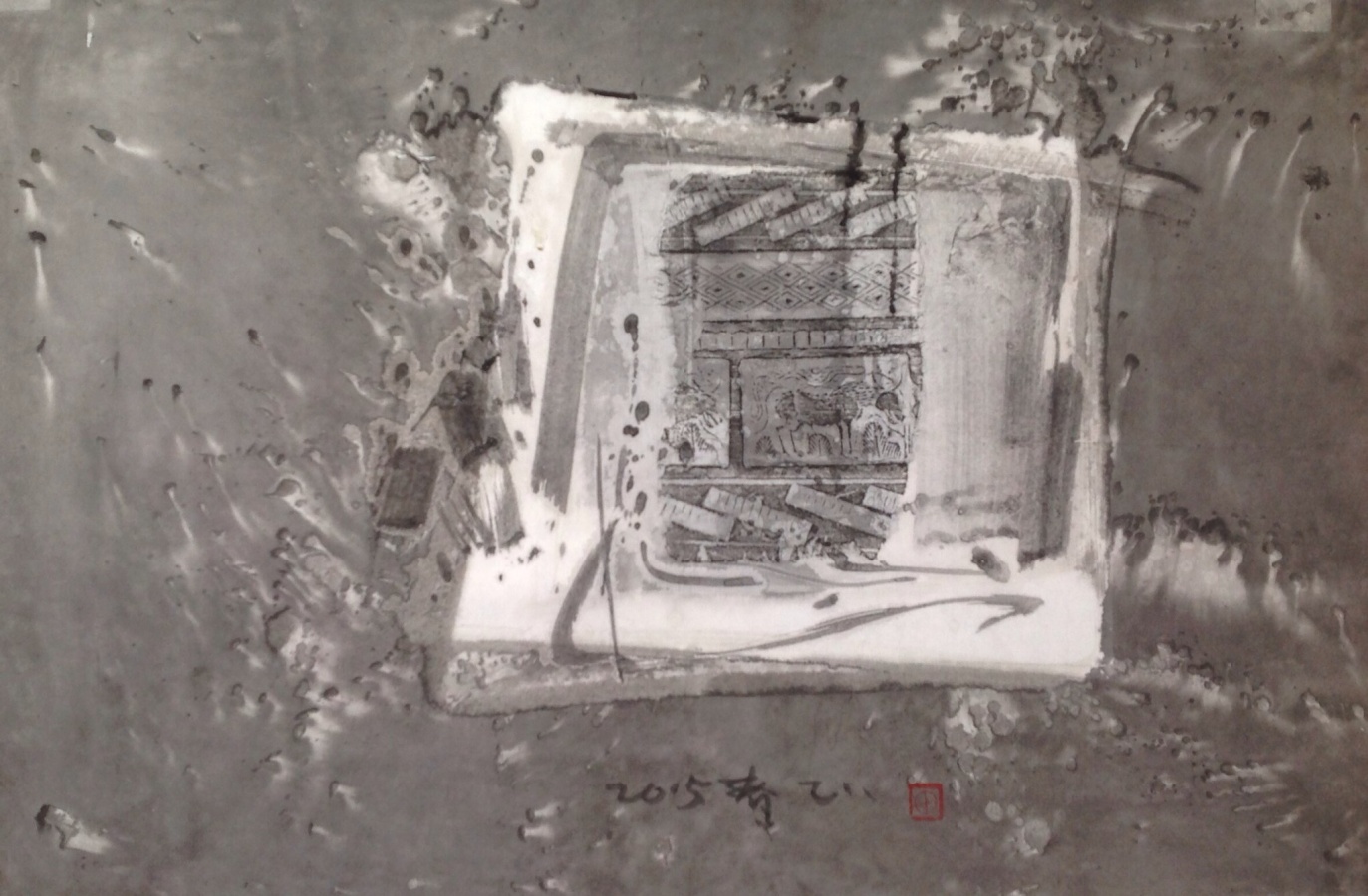 原因很简单:在田小赤的这批新作中,拓印的汉砖元素,指代着的是中国传统美学、文化符号,同时,它也作为一条线索贯穿在这批作品的始终,表示它是相对来说恒定不变的;而水墨,虽然也是中国传统的文化符号,但它始终在“变”,在出陈就新或者饰新归旧,在当代,水墨更是常常被中国艺术家用来抗衡、化解、融合西方美学的手段。而在田小赤最初的本意中,就是想探索当这种常变常新的“古老的新手段”碰撞“古老的不变体”之时,会产生什么样的效果。他的态度是坚决的,手段是利落的,自然,用“进入”更契合本意。