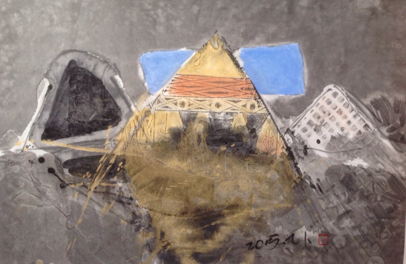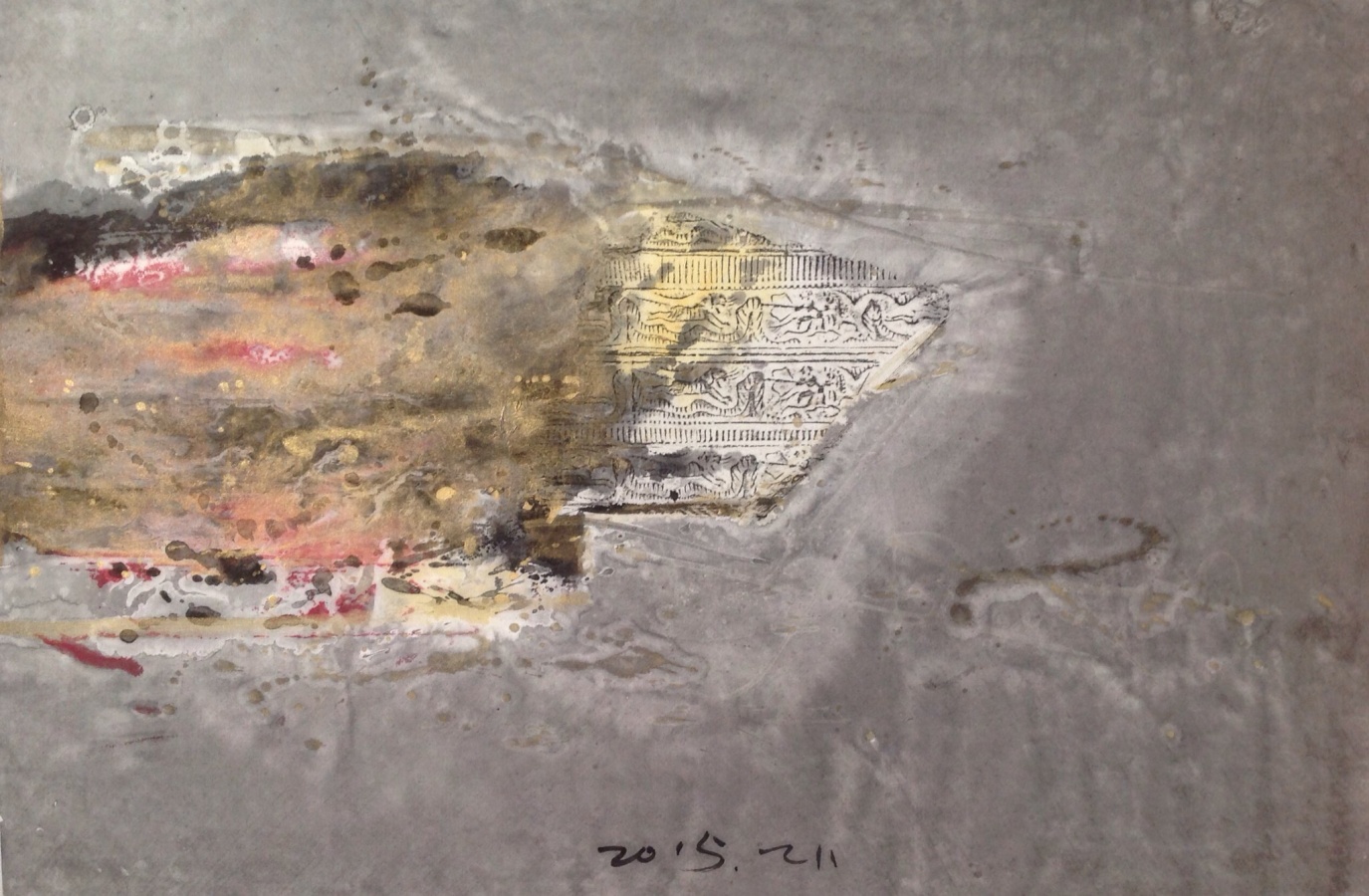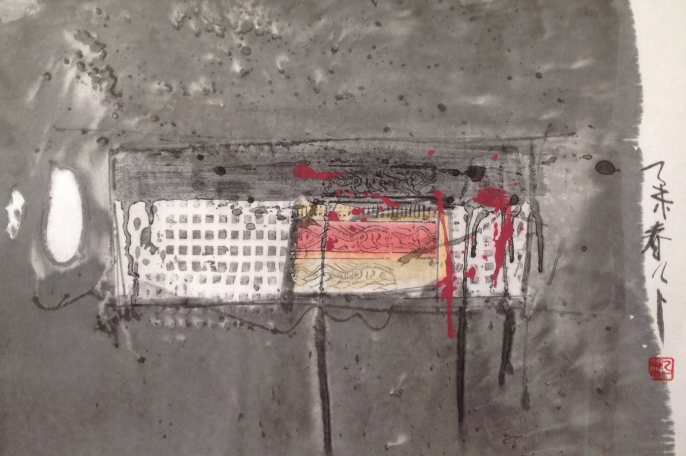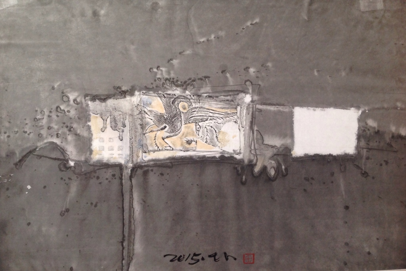 原因很简单:在田小赤的这批新作中,拓印的汉砖元素,指代着的是中国传统美学、文化符号,同时,它也作为一条线索贯穿在这批作品的始终,表示它是相对来说恒定不变的;而水墨,虽然也是中国传统的文化符号,但它始终在“变”,在出陈就新或者饰新归旧,在当代,水墨更是常常被中国艺术家用来抗衡、化解、融合西方美学的手段。而在田小赤最初的本意中,就是想探索当这种常变常新的“古老的新手段”碰撞“古老的不变体”之时,会产生什么样的效果。他的态度是坚决的,手段是利落的,自然,用“进入”更契合本意。