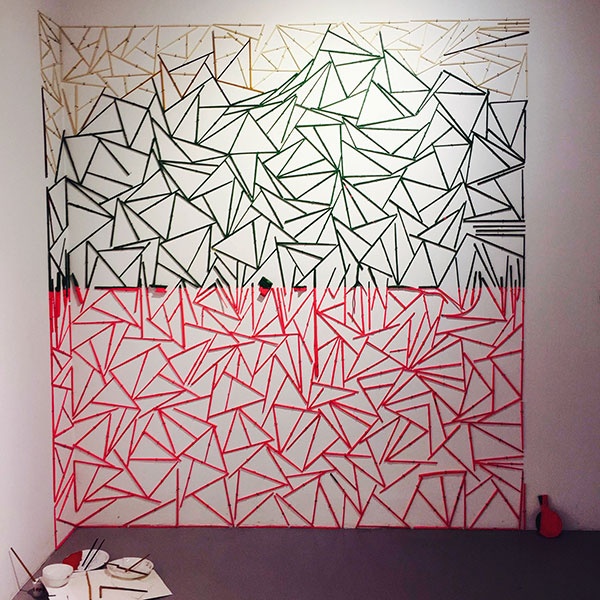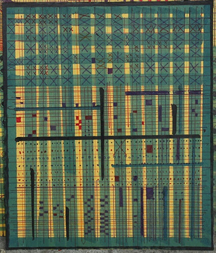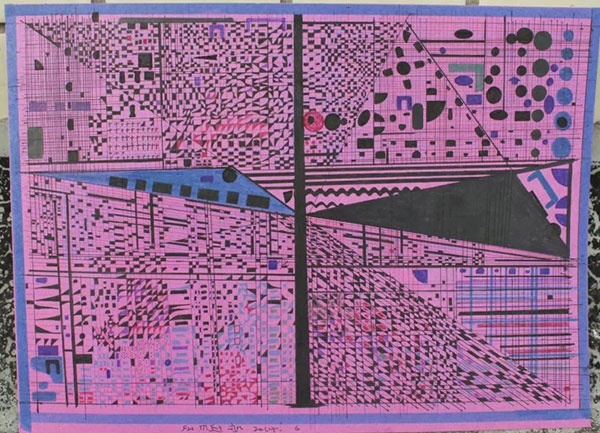 2012年,青年艺术家付美军开始创作一批用用网格和线条组成的作品,这些作品没有任何具体可辨识的形象,只有自由组合的色块和随机排列的直线、曲线,象数码软件中的矩阵,随时处于衍生、变化的过程之中。