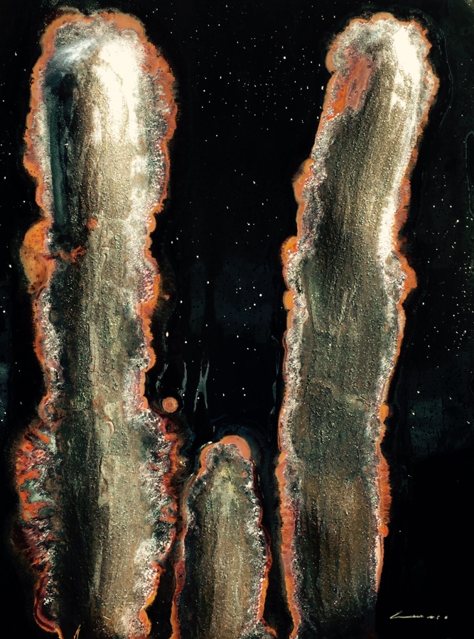 余乐恩一直坚信陶瓷艺术来自于大自然本身,泥与火是质地最令人亲近的材料。在不断感受泥料的创作过程中,余乐恩除了关注表面的效果,更关注制作过程中的哲学。本次展览中,余乐恩将展出他从陶瓷艺术出发衍生而来的水墨艺术作品。就着绞胎和绘制泥料的抽象形势,他以宣纸拓印泥胎而成互为镜像的抽象图像,是“从泥而来”材料拓展新的探索。