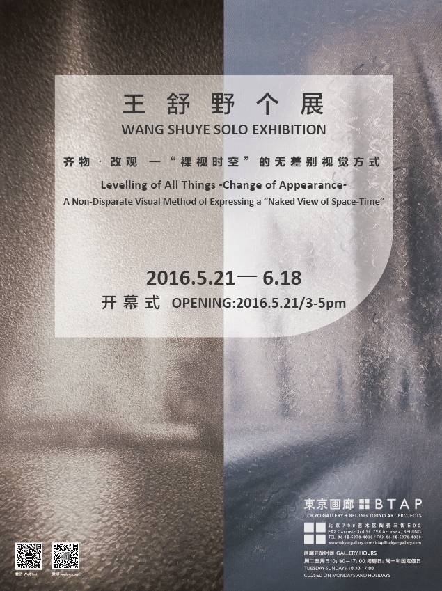 東京画廊+BTAP(北京)将于5月21日-6月18日举办艺术家王舒野个展《齐物·改观:“裸视时空”的无差别视觉方式》,这次展览将是艺术家近年艺术创作的一次集中展示。
