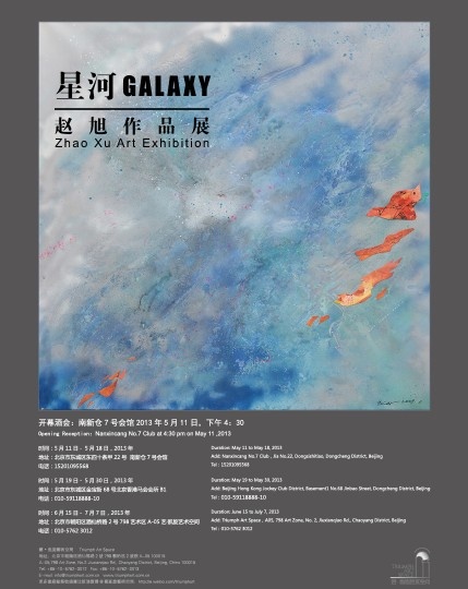 “星空——赵旭作品展”将于2013年5月11日四点在南新仓7号会馆开幕,本次展览是赵旭先生艺术生涯一次集中的展示,展览作品从八十年代初的素描到九十年代的水墨再到现在的综合媒材新尝试,从水墨到西画,从写意到抽象,总览了赵旭先生的艺术之路。