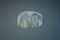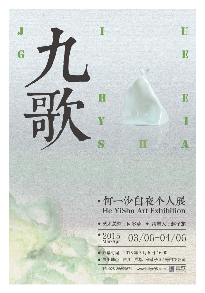 此次在著名的“白夜”,何一沙向我们展现了她一直用心创作的陶艺作品《九歌》以及一系列关于《楚辞》的水彩绘画。《九歌》可谓是《楚辞》中最为瑰丽、真切的篇章,其中蕴含着一个上古先民心目中的有着天、地、人、神四维度的世界,一个今日我们已无力触及的世界逻辑。凭着自身独特而完整的世界观,何一沙开始以艺术的方式重新解读、还原某些被遗忘遮蔽的信息,将《九歌》从“文学”恢复为“世界”,使得因意识形态而断裂的精神谱系有了重新延续的可能。在这些陶艺作品中,何一沙以装置艺术的思维审视“陶瓷”这一古老符号,将其视为一种包括了中国古代“五行”观念的材质,萃取出更为复杂的思想,这本身是对“陶艺”在观念上的推进。传统陶艺之所以难以进入当代,是因为始终无法突破陶瓷的固有概念;当陶瓷固化为一种“精湛技艺”的时候,其原本具有象征意义的观念密度被大幅削减,最终由形而上的“造物”沦落为到世俗玩味的用具。何一沙以一种仪式化的方式对此作出了改变。本次展览中的陶瓷作品《山鬼》巧妙利用了陶与瓷不同的材料质感,使二者建立了前所未有的关系:同出于大地,陶有山川之苍茫,而瓷有生灵之圣洁。同时,无论陶瓷,均不过分具备细节而仅存意象,以陶瓷贯通了中国水墨的气质,形制虽小而有泱泱大气,仿佛沟壑间有大风来往。此外,这种立体摆放让人想起源自上古的“礼”——那些借助日常之物模拟宇宙秩序的仪式,诸如“以玉作六器,以礼天地四方”、“太牢之礼”“以四神守四方”等等,将现代艺术中的装置艺术概念与之进行了碰撞和融合。