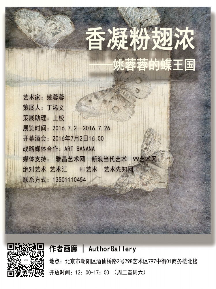 2016年7月2日下午4点,【香凝粉翅浓—姚蓉蓉的蝶王国】将在作者画廊正式开幕,展览将持续至7月26日。