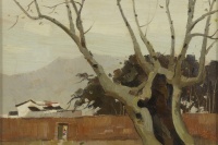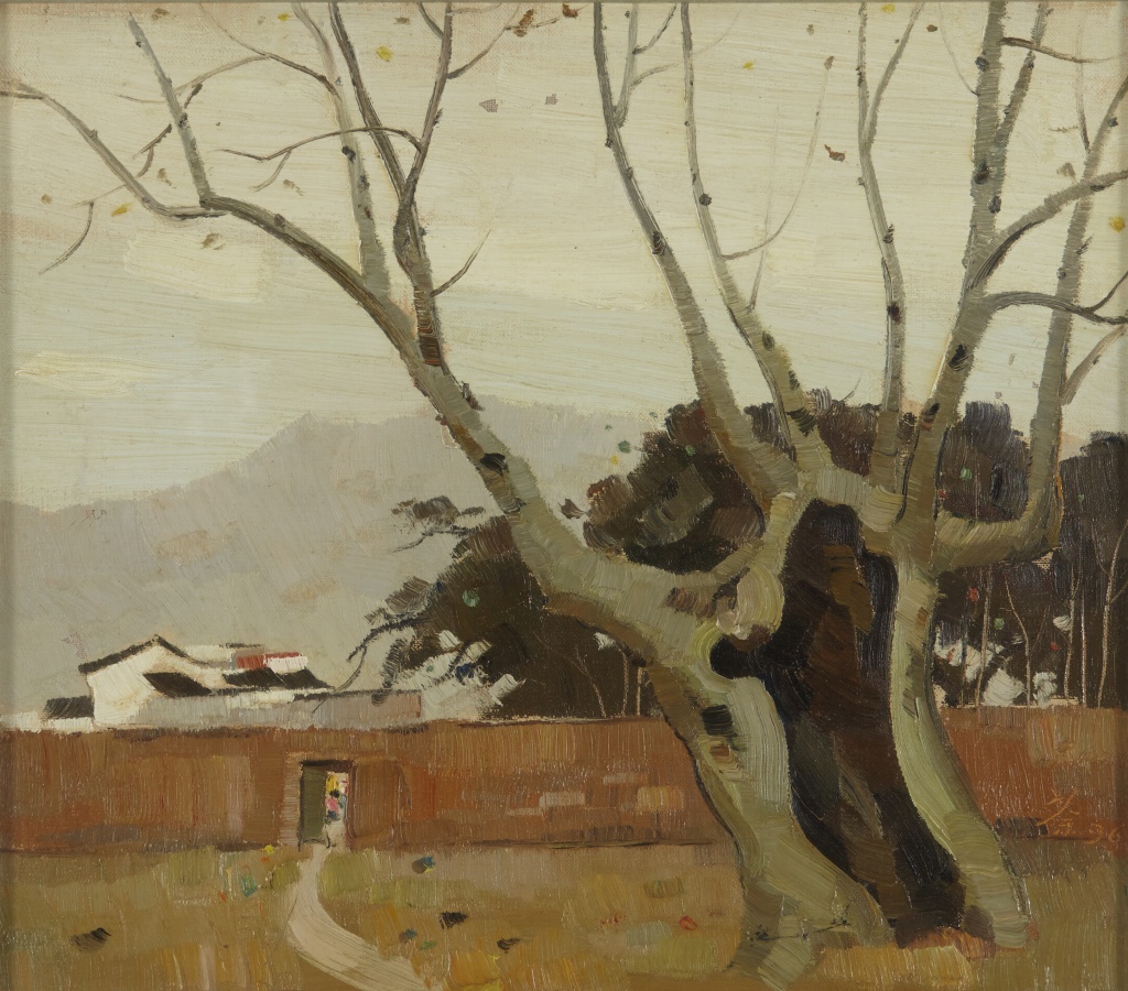 此作于60年代前后完成,吴先生本人十分喜欢该作品,自藏于家中悬挂十余年,这幅油画沿用了以暖色为基调,将油画的名族化,用来绘描江南小景,给人的感觉这两幅画直观、生动。画面色彩的丰富细腻性与中国传统艺术精神、审美理想融合到一起。这幅画给人以和谐、清新的色调,宁静、淡美的境界,使画面产生一种抒情诗般的感染力。在油画的画面上能找到中国所特有的处理手法,这就是吴老先生所坚持的西画中融入中国传统绘画技法。