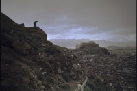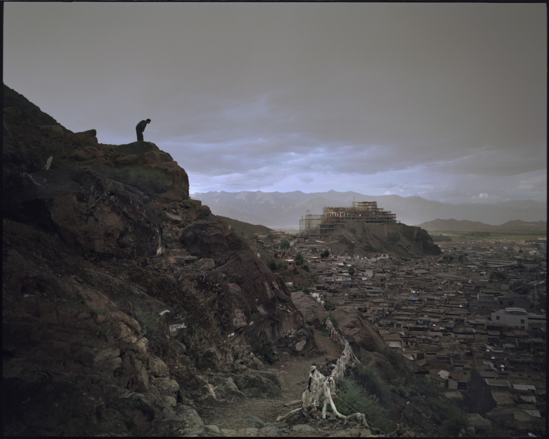 在骆丹这里,这种叫做摄影的工作表现出了越来纯粹的时间存在论意识与客体优先性意识。最初,在纪实快拍风格的《318》与《南方、北方》中,他捕捉到的是一次次偶然的现实,一种依赖于趣味与情感的现实,或者说现实感。这两个系列以日记式的时间性,以一个人的视角,叙述了一个空间移动中的观看过程。然后,在《素歌》中,他专门选择湿版这种过去的技术,去拍摄保持着过去生活方式的少数民族族群,使摄影技术以一种观念的身份参与在其作品里。这是一种对过去的凝视,时间意识镶嵌于对象、方法、内容,以及技术之中,而不再依附于叙述性。最后,到了《何时离去》,时间成了纯粹的主题,亿万年前形成的地貌在底片上显影,然后于暗房内再次投影到大尺幅的湿版底版上。骆丹的这个变化过程,既是时间意识逐渐加强最终成为核心问题的过程,也是个人意识,乃至主体意识逐渐隐匿,逐渐融入客体意识的过程。摄影在此过程中也转变了立场,从对象化的主动发现,渐渐成为安静接受世界显现的过程。