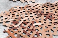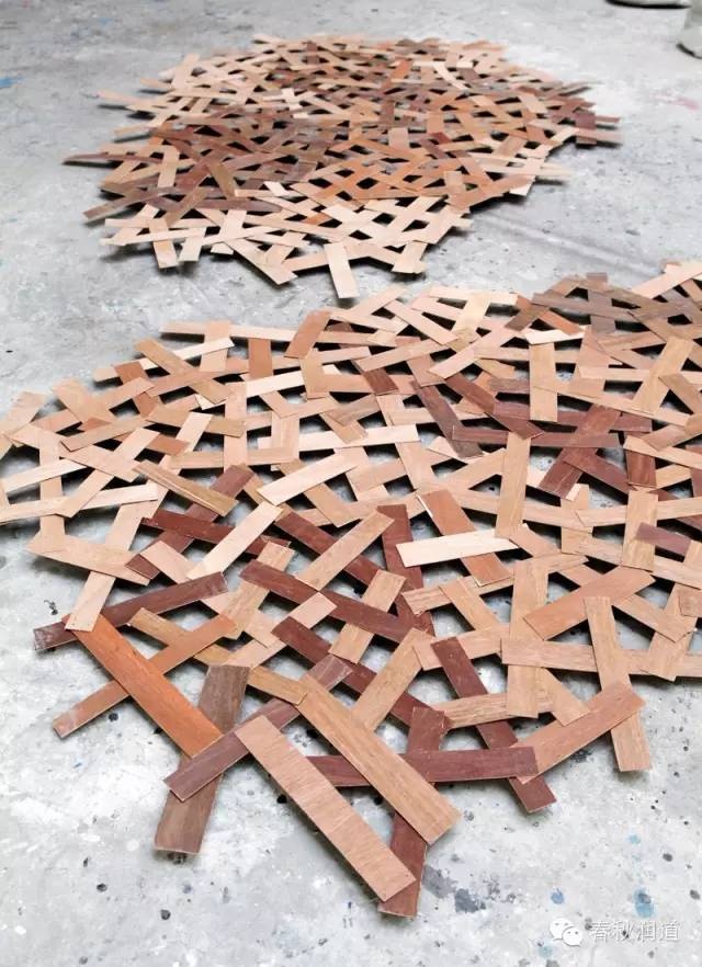 有一组木片,在隋建国的工作室里从天花板悬下,貌似与放在主位的作品不大有关,这些木片原本是在雕塑时用的支架,作为辅助材料似乎没有独立的意义,是因为观念的转变让他重新面对它们。两年时间里,虽然不在隋建国所计划的工作序列中,但在木片被用做支架,被卸下,被收集,被重组的日积月累活动中,这些木片的物性和组织形式逐渐显现了新的秩序。日积月累不只是积累内省的能量,还在于在行动中生成秩序。此秩序包含着人与物、与事的共处中的造化。刚巧,会空间有一组窗棱像是在遥远地侯着这些木片,邀请它,在这里重新组织一种内外、上下的呼应目光。