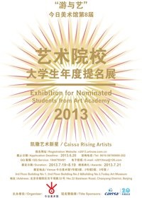 2013 年7 月19 日至8 月19 日2013 艺术院校大学生年度提名展,将于今日美术馆1号馆3 层,2 号馆2 层,3 号馆1、2 层展出。7 月21 日将在今日美术馆广场举行隆重的颁奖典礼。本年度大学生提名展真诚地希望能够为年轻的参展者们带来全新的视角和灵感,共同经历一次美妙的创作之旅。