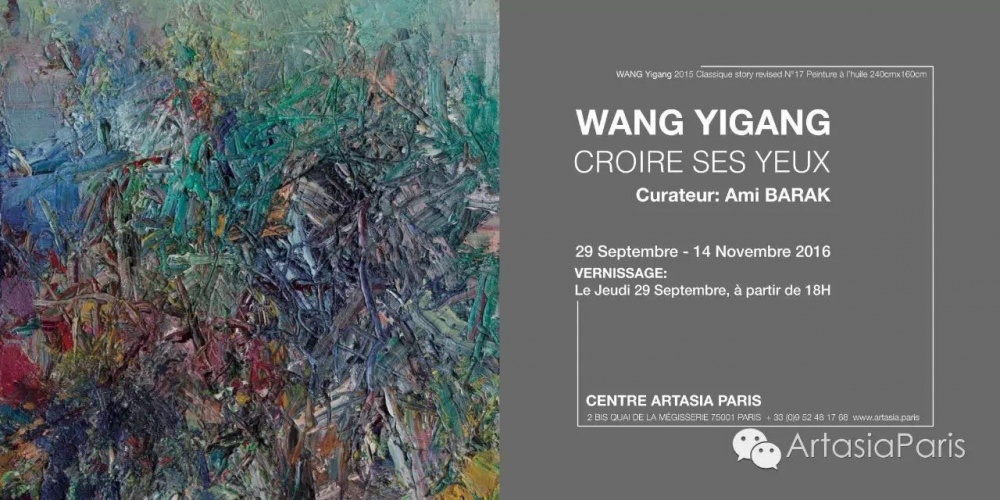 二零一六年九月二十九日至十一月十四日期间,CENTRE ARTASIA PARIS邀请法国知名策展人艾米·巴拉克策划中国当代抽象艺术家王易罡的个人回顾展“未见””Believe your eyes“。这是王易罡先生在法国巴黎首次举办个人回顾展。展览汇集了艺术家自1990年以来不同时期最具有代表性的作品以及2016年的最新创作,旨在为欧洲艺术界了解艺术家王易罡系统的艺术创作历程。