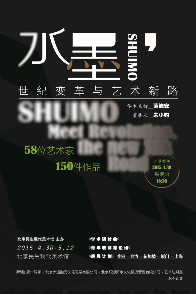 “水墨SHUIMO,世纪变革与艺术新路”大型水墨艺术展将于2015年4月30日至5月12日在北京民生现代美术馆开幕约60位艺术家的150件作品将覆盖美术馆所有展厅,先驱、革新、承拓三个部分的作品将对百年水墨艺术变革的历史序列进行集中呈现,同时探索当代水墨发展的多元变化。