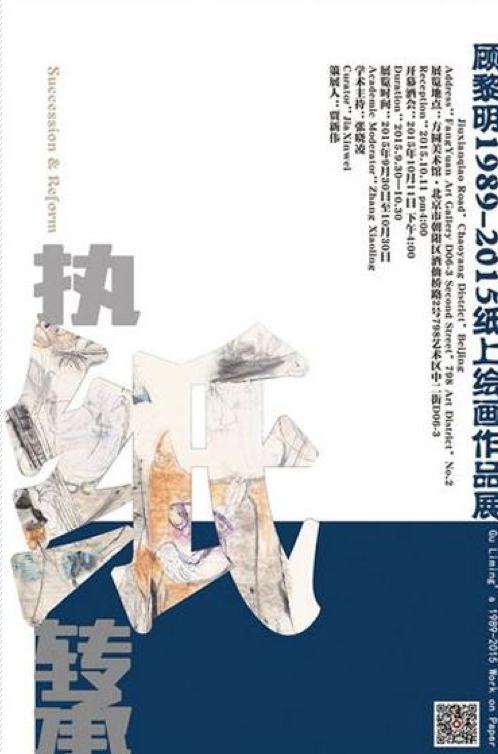 由贾新伟策划、张晓凌担任学术主持、方圆美术馆主办的展览“执纸转承--顾黎明1989-2015纸上作品展”,将于2015年9月30日在方圆美术馆(北京)开幕(开幕式酒会:10月11日下午四时)。本次展览整理重现了顾黎明从1989年起始至今近三十年的纸本创作历程,展出90余件作品,以呈现艺术家在中国当代艺术史中所开启的艺术新方向。