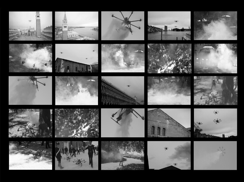 2013年威尼斯双年展开始之初,7月4日早晨6时,两架不明飞行物出现在著名的圣马可广场上空,盘旋一阵后开始向空中喷烟雾,约一分钟之后从天上消失。不明飞行物的出现引起常驻圣马可广场的警察注意,不到几分钟警察从一幢楼里走出来,将两名放飞不明飞行物的年轻人带进警局。