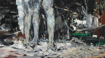 毕业于德国国立汉堡艺术学院自由艺术系的郭笋,作品充满表现主义色彩,画面暗哑神秘,艺术家认为精神世界与现实生活永不和谐,需要赋创作以生命,使创作成为精神需求,作品更像是一种喃喃自语,而喃喃自语是自我规避误解和诘问的方式。