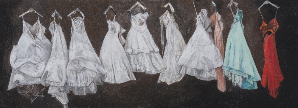 这种对块面本身的执着,是席丹妮对事物的体认方式,那是物在绘画中的定格与永恒,无关乎宏大叙事,无关乎历史人文,仅仅只是物的存在本身。这个存在是当下的情态,似乎即将耗尽消失,没有过去,也没有未来;这个存在是微不足道的,在使用价值的边缘,是物的碎屑,如同纷攘而起的尘土一般,裹挟着感官的神经末梢,带来些许茫然触感,旋又复归平静。物系列所存在的时空就是这么一个间隙,此时此地,微乎其微,却也不多也不少,恰好我们就这样与她的物相遇了。(简燕宽)