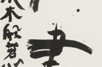 认识荒木先生的人都知道,他为人率直,待人亲切热情,语言幽默诙谐,腔调丰富。荒木经惟的书法作品也因着荒木的性格和魅力而独具吸引力。透过荒木的书法,似乎可以看到那位戴着圆眼镜,穿着无袖T恤和背带裤,背着相机穿行于东京街头和各色人体之间的摄影奇才。其中所写的内容,除了荒木在摄影上就热衷于表现的像“生、死”这样的对立物外,也有许多是来自于中国传统的词藻。
