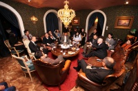 《神圣山水-丁方油画展》开幕仪式结束后,文艺复兴艺术酒会精彩上演。中国人民大学艺术学院执行院长丁方教授、著名学者肖鹰、著名学者牛宏宝等和来自社会各界的精英人士从不同的角度对话文艺复兴,畅谈艺术与诗歌、哲学、音乐等不同领域的关系。嘉宾共同回望人类艺术的原点——希腊、罗马艺术,同时展望中国文化大发展大繁荣的前景,参与中华文艺复兴。