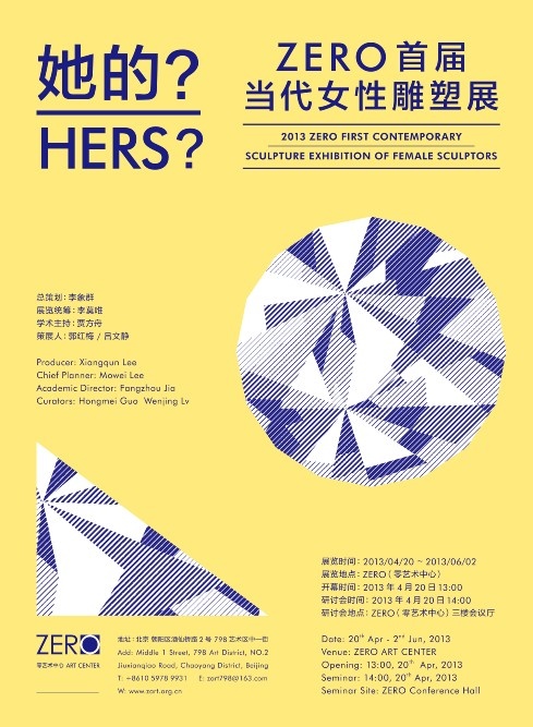 《她的?》是ZERO年度系列展的首展,也是ZERO创建作为“中国首个雕塑艺术空间”的启动展。ZERO的创建者、馆长李莫唯女士表示“ZERO将专注于雕塑领域,长期致力推介青年雕塑艺术家,成为研究、展示、推广传播雕塑艺术的专业平台。这次举办的青年女性雕塑家群展,更是印证这样的建馆理念。”策展人由中央美院艺术史博士、中央美院美术馆研究馆员郭红梅女士及中央美院艺术管理硕士吕文静女士共同担任。