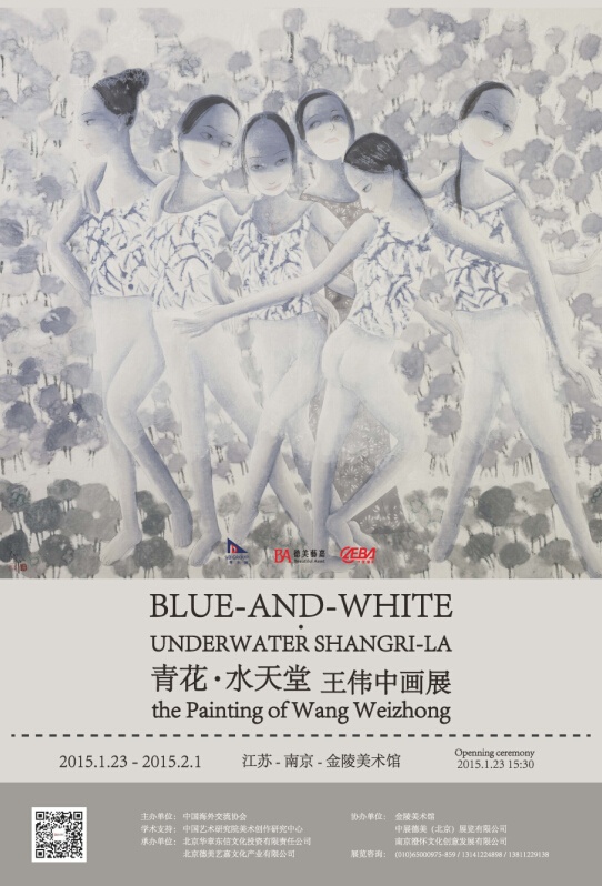由中国海外交流协会主办,中国艺术研究院美术创作研究中心提供学术支持的“青花•水天堂——王伟中画展”将于2015年1月23日下午15时30分在南京金陵美术馆开幕,展览由北京华章东信文化投资有限责任公司和北京德美艺嘉文化产业有限公司联合承办。