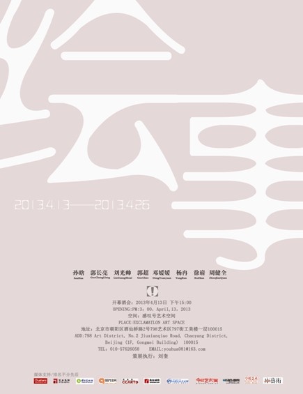 2013年4月13日,798感叹号艺术空间将举办“绘事——天津美术学院青年艺术家联展”。本次展览共有八位青年艺术家参展,分别是孙晗、郭长亮、刘光帅、郭超、邓媛媛、杨冉、徐崭、周建全。这八位新锐艺术家均毕业或就读于自天津美术学院,经过多年专业的学院式教育,积累了扎实的绘画功底,并继承了天津美院优良的画风传统。然而这批年轻艺术家并没有固守学院派程式,而是从各自的感性经验出发,运用不同的艺术表现手法,大胆而纯粹地描述着个人对生活的直观感受和理性思考。从这批艺术家的作品中,我们可以体会到年轻一代对于世界的认识,其中既流露出单纯率性的学生气,又暗含了这一代人所特有的悲伤和彷徨。然而他们的作品传达给观众的情感体验,却不尽是悲观失意的负面信息,而是在忧郁中透出希望,困惑中也做出解答。观众在面对画作,探视画家内心世界时,自然也会感受到青年人对未来和生活的憧憬与期盼。