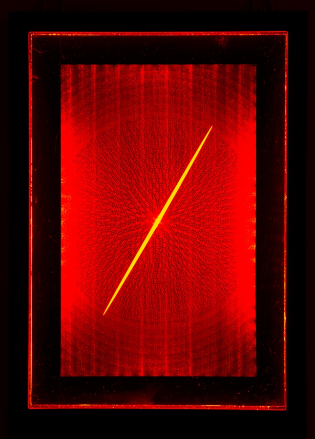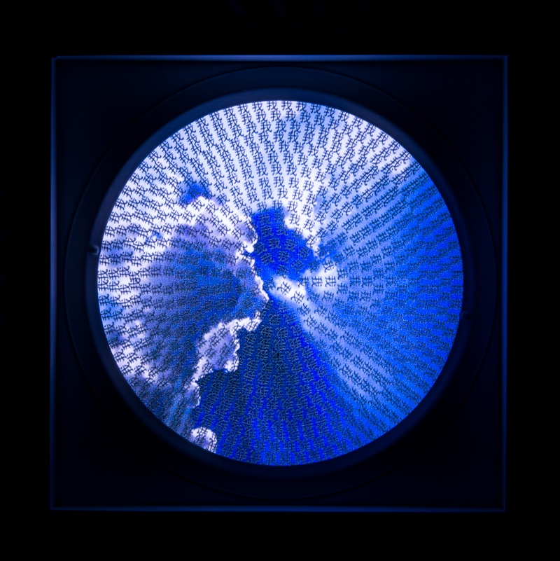 这是我第一次见到阚旻的灯光装置作品。黑暗中,这些或鲜亮或灰暗的圆有旋转的吸力,上面则布满小小的“我”,正是无数念头的发端,万分纠结的暗伤。