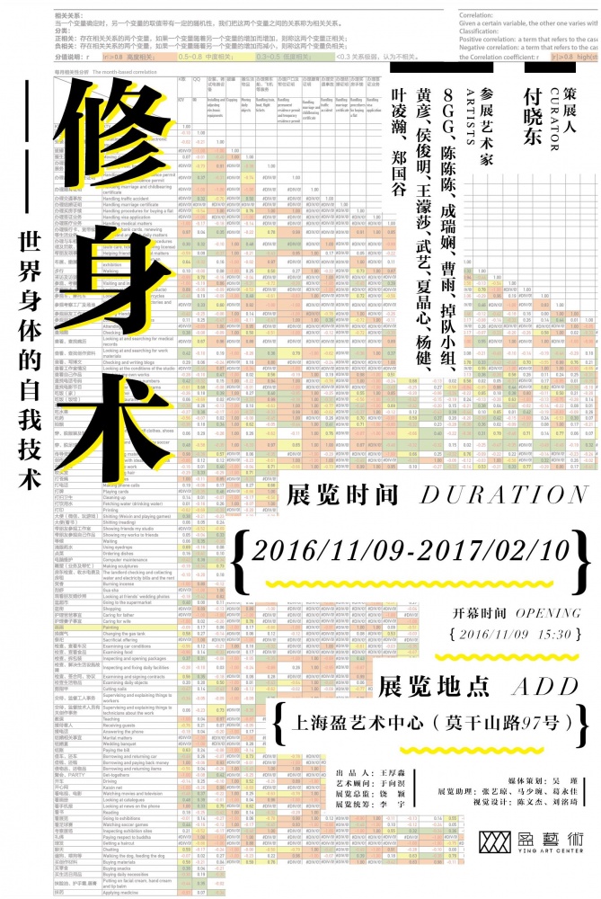 11 月 9 日,盈艺术中心举办的“修身术—世界身体的自我技术”展览将在莫干山路 97 号开幕。本次展览由知名策展人付晓东女士担当策划,邀请艺术家 8GG、陈陈陈、成瑞娴、 曹雨、掉队小组、黄彦、侯俊明、王濛莎、武艺、夏晶心、杨健、叶凌瀚、郑国谷等参展。