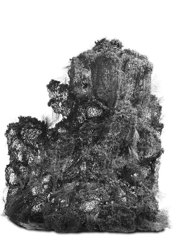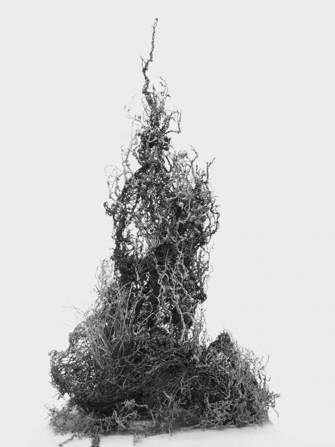 黄镇的雕塑源于中国山水画。他通过巧妙的转换,把文人画中的山水用金属丝编织成三维、通透的形象,这种透明的质感加深了中国画中留白的意味。他这种直接把作品的源头寄托在文人山水画,潜移默化出的山、石、杨柳等雕塑作品,很明显的表达了作者对于中国文人画的重视和继承。与此同时,他的作品在选材和手法上也独具匠心。手工加工过的金属丝,传统中国艺术形象的选取,以及西方传统雕塑手法的运用等,都是作者试图用当代手法再现传统美学价值的一种尝试。这种对当代中国雕塑和传统水墨文化的调和,让他的的作品,在过去与现代之间架起了一座桥梁。