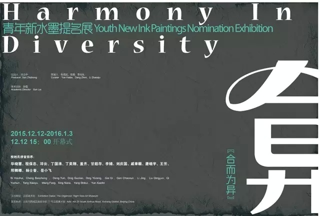 所以,这个展览选取了一个在传承上具有典型意义的例子,一个水墨表达的侧面,一群具有鲜活生态的年轻人,他们几乎在一个类似的水墨环境和水墨语境下成长起来,而他们的水墨态度、语言、情感等彼此迥异,他们尝试各种失败,尝试赢得自己,在不同程度上积累成一种直接的思想,一种思想的力量,最终这种力量既深化了自我认知的态度,又暗合了某种集体无意识的态度。因此,这个展览定名为:合而为异。