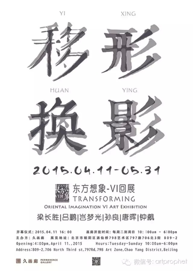 “移形换影——东方想象VI回展”将于2015年4月11日16:00时在798久画廊开幕,参展艺术家为:梁长胜、吕鹏、岂梦光、孙良、唐晖、钟飙,本次展览精选了六位艺术家在长期创作中部分作品,从这些作品中我们不仅可以看到各位艺术家在其创作中所呈现出来的艺术风貌和作品所影射出来的时代精神,更重要的是这些作品为观众提供了一个体验艺术家精神世界的独特视角。展览将持续至2015年5月31日。