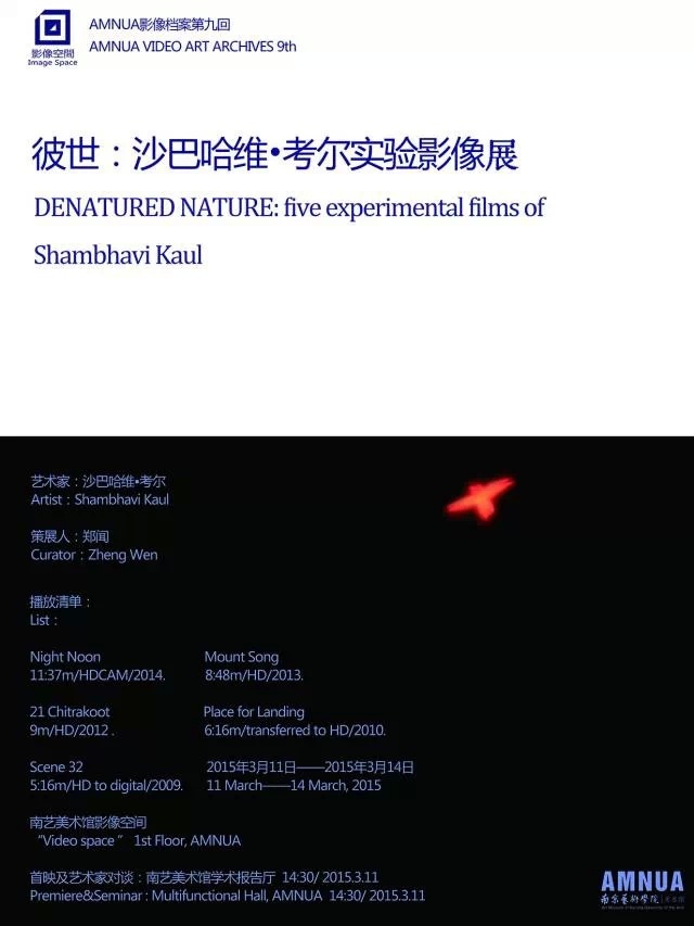 本期影像档案展出艺术家沙巴哈维·考尔的5部实验影片,她生于1973年,现居南卡罗来纳。沙巴哈维·考尔的电影建构召唤出神秘、科幻的非场所(non-places)。她的作品被形容为在创造“压缩与分散地带”,惯用蒙太奇与再循环(recirculation),在引入一种情感回应的同时测估我们认知自身遭遇的能力。她的作品巡迴于世界各地展映,其中包括柏林电影节、多伦多国际电影节、纽约电影节、伦敦电影节、鹿特丹国际电影节、爱丁堡国际电影节、奥伯豪森国际短片电影节、安娜堡电影节与印度实验电影节。沙巴哈维·考尔生于印度焦特布尔,目前于印度与美国生活与工作。