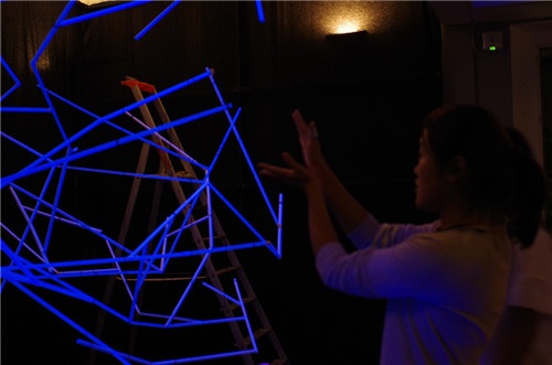 事物之间的关系一直是她关心和探讨的主题,也转化为她作品里的视觉元素。艺术家通过“线”来连结事物,呈现其间的关系。例如她获得“凡尔赛创作之夜”比赛的夜间视觉空间艺术装置“Chiasma ”,就完全由线条的组合呈现。这次橱窗作品从视觉上延续了她对“关系”的认识。