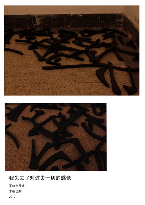 这不是欧阳苏龙第一次用光来做作品,《一种存在》(2010)用油泥填充了物体在灯光下面形成的投影。《光的形状》(2011)将一个单一光源下得雕塑投影填充起来,成为一束“凝固”的光。到了毕业时创作的《影子》,剔除了前两个系列的物体,留下影子作为一个单独的存在。