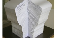 谢玮毕业于清华美院的艺术设计后,赴法国留学深造,先后就读于巴黎建筑学院和法国凡尔赛国家建筑学院。设计和建筑专业的学习赋予了她极强的设计感和理性的逻辑。这些都体现在橱窗的工作方式上。由于艺术家在法国学习工作,无法到场布展,更多是以一个设计师的工作方式对来介入参与。谢玮依照1号橱窗的图纸建立模型。采取垂吊的形式,营造错落的层叠感观。这种工作方式也对布展提出了更高的要求。经过250根鱼线的悬挂、1184个节点的计算、296张宣纸的装订,以及今日美术馆布展队员的努力,才令谢玮的设计得以在橱窗最终呈现。